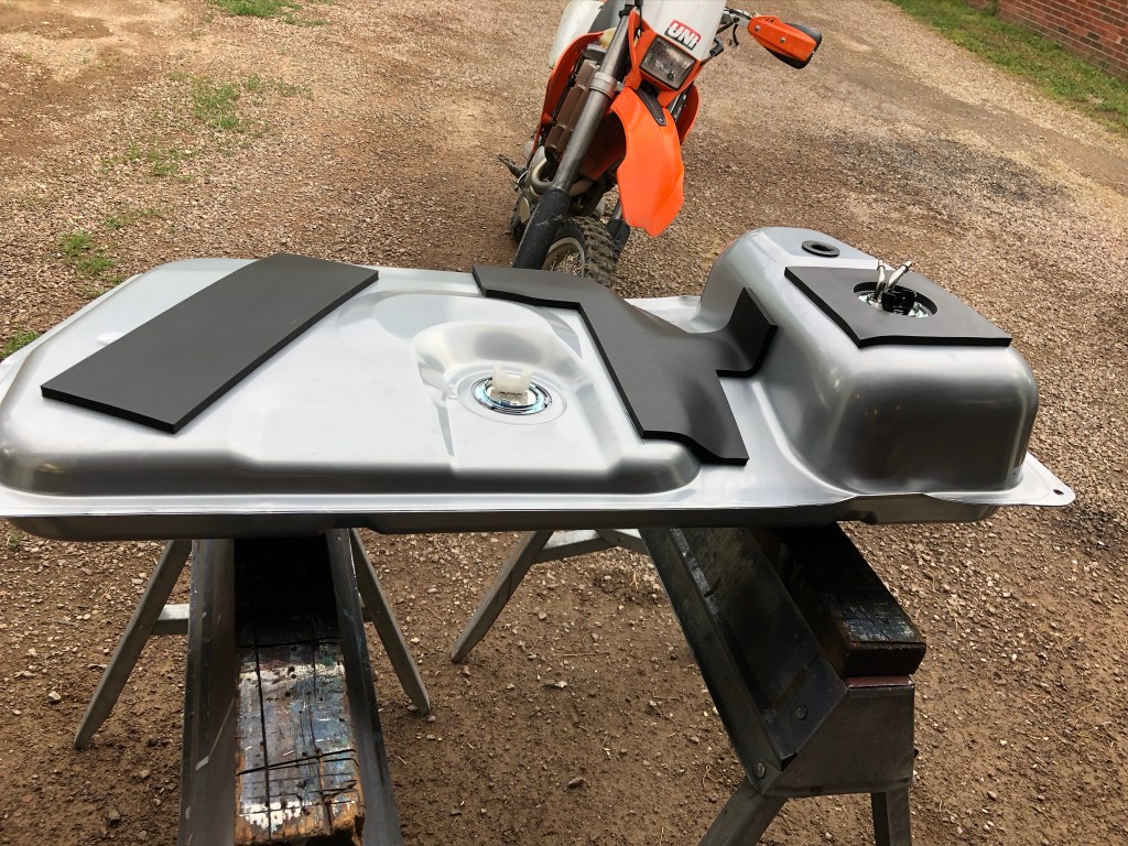 The back of the car stunk like old rotten fuel and you couldn’t hear the pump running so I decided to drop the tank. It was full of rust and sludge like gas (like a dummy I didn’t take a picture), so I ordered a new fuel tank kit with a fuel pump from Late Model Restoration.