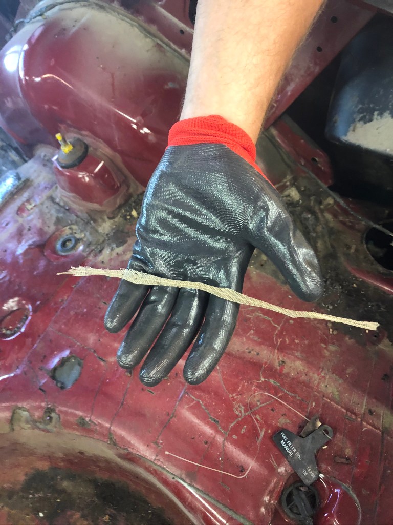 With that part of hunting season over, I wanted to finish the interior before storing the car away for the winter. My neighbor across the street said he would let me store it in his garage with his Corvette. For my birthday, my son Evan bought me new weather stripping for the car.