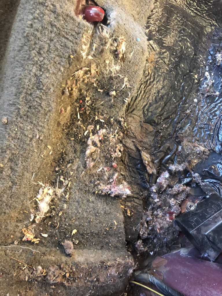 After seeing all the mouse evidence, I decided to pull the headliner, which turned out to be a good thing. The mice had really been in there.