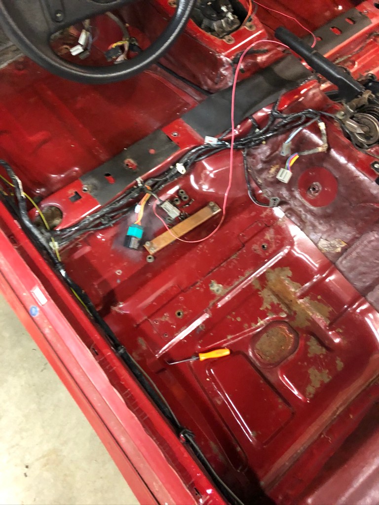 The worst rust on the car was on the inside of the rear floor pan, and it was just surface rust. I cleaned it up and sprayed a little paint on it.